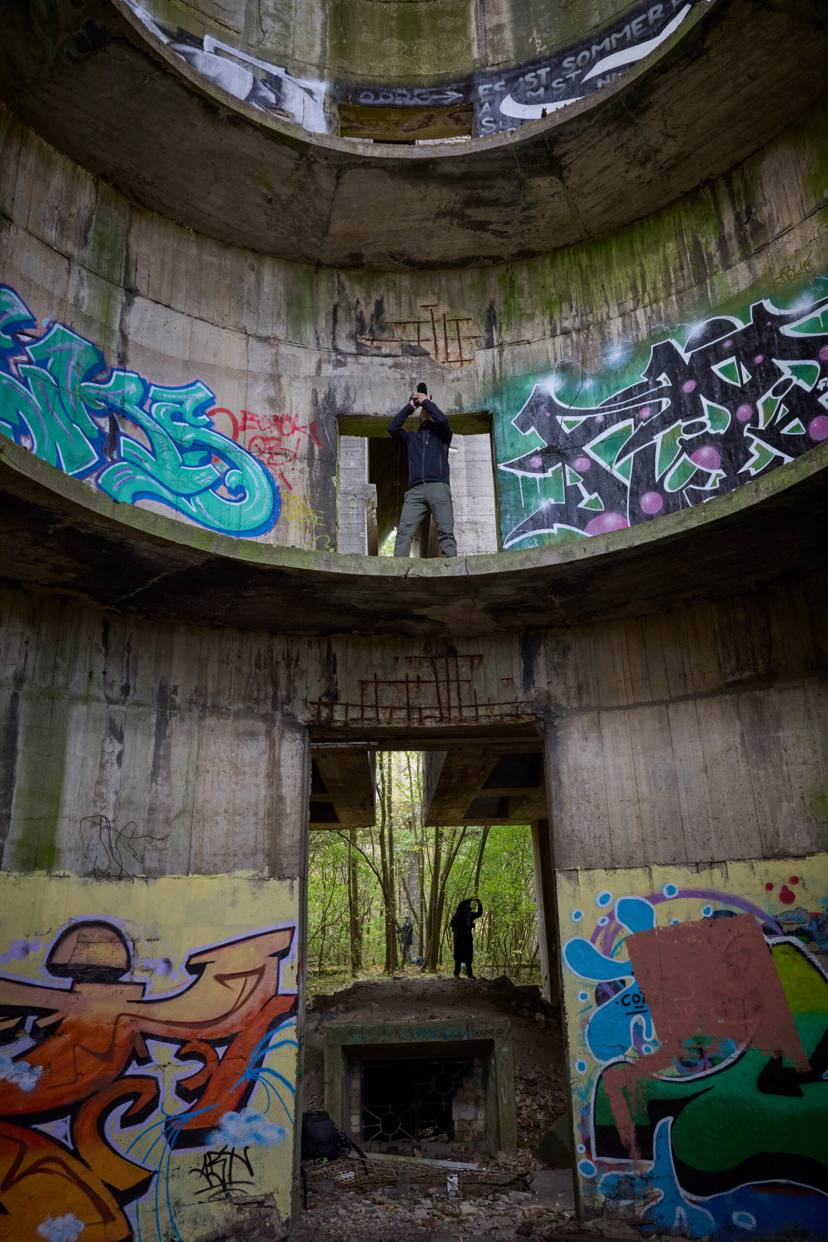 Einige Fotofreunde lassen erst einmal das Gebäude auf sich wirken, andere sprinten förmlich, um die ersten Motive zu finden – jeder, wie er mag. Löcher in Wänden und Decken, Betonstrukturen, Licht und Schatten, Graffitis und die Pflanzenwelt rund herum… Hier kann man locker mehrere Stunden verbringen, ohne das es langweilig wird!