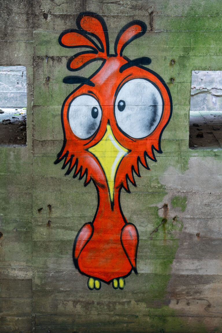 Wieder aufgewärmt geht es in die unteren Räume, die nur gebückt oder auf allen Vieren zu erreichen sind. Durch den geänderten Blickwinkel kann ich aber noch bessere Blickwinkel auf das ein oder andere Graffiti erhaschen, die nun im Spiel von Licht und Schatten besonders wirken. Auch allgemein sind in allen Ebenen sehenswerte Graffitis verteilt – eine tolle Ergänzung zur Architektur und Natur.